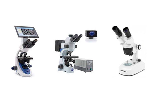 Microscopios binoculares o trinoculares para aplicaciones de campo claro, campo oscuro, contraste de fases, fluorescencia, polarizacion, invertidos y estereomicroscopios binoculares o trinoculares para aplicaciones en laboratorio y la industria, gamas para uso estudiantil, laboratorio general o en áreas especializadas de investigación; disponibles accesorios de digitalizacion de imágenes como cámaras, tablets y software, sistemas externos de iluminación para los estereomicroscopios; refractómetros y polarimetros
