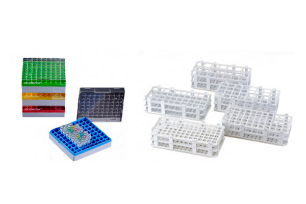 Criocajas fabricadas en policarbonato, para tubos de diferentes dimensiones, adecuadas para el almacenamiento en congeladores. Químicamente resistentes a alcoholes y disolventes orgánicos suaves. Gradillas en polipropileno para tubos de diferentes tamaños, almacenamiento de diferentes capacidades, autoclavables en caso de requerirse. Con Codificación alfanumérica de lugares.