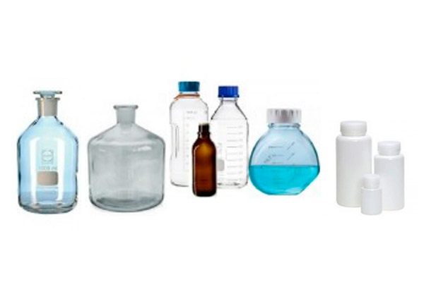 Frascos con boca ancha, esmerilados, frascos goteros, frascos para bureta, para DBO, o con tapa rosca en vidrio claro o ámbar. Diferentes capacidades, de acuerdo a la necesidad del laboratorio.