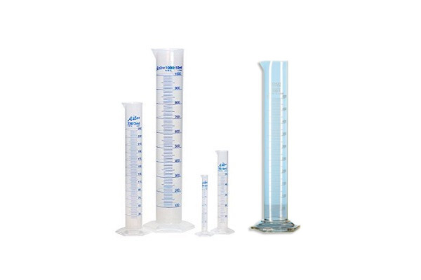 Probetas en plástico PP o vidrio, clase A o B, con graduación blanca o azul, diferentes volúmenes, de acuerdo a la necesidad del laboratorio.